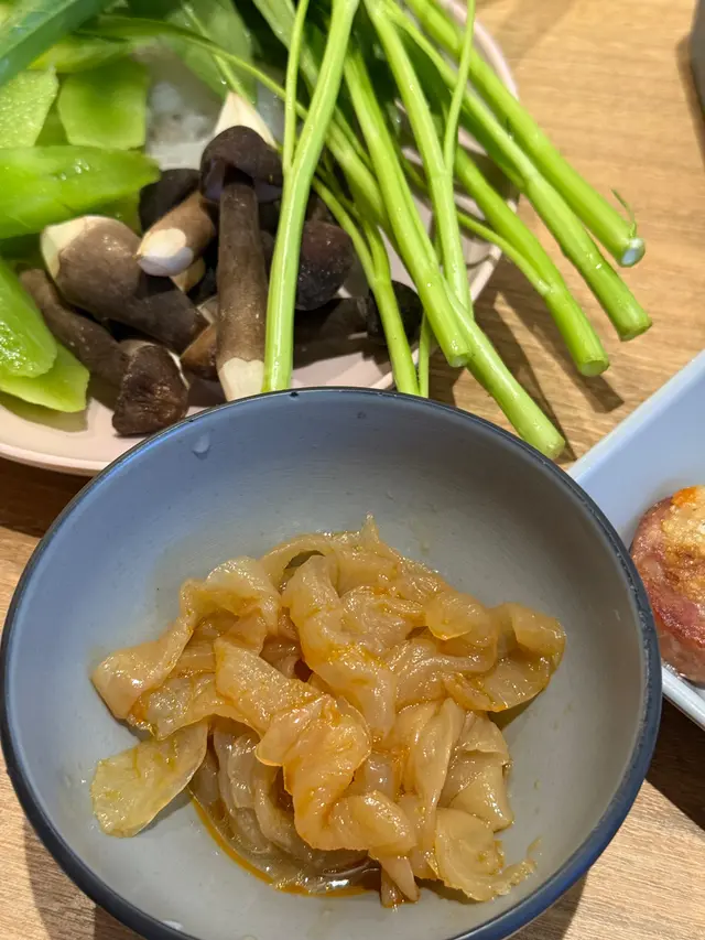 其他好值得推介嘅火鍋配料有勁吸湯嘅砂爆魚肚、竹笙娘蝦滑、 響鈴魚籽蝦滑卷。仲有鮮甜無沙嘅沙白,嚟到嘅時候仲係識郁!