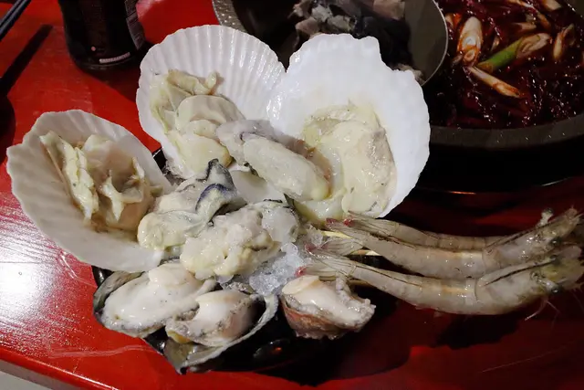 海鮮拼盤有鮮蝦、鮑魚、元貝、廣島蠔。鮑魚同蝦都好甜呀!鮑魚多肉而且又唔太韌,蝦都好新鮮。