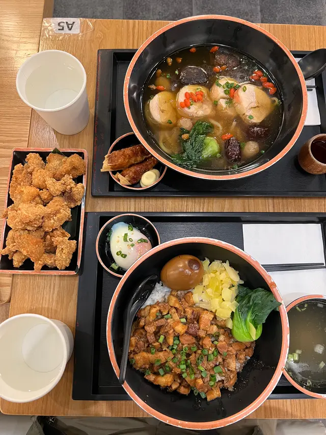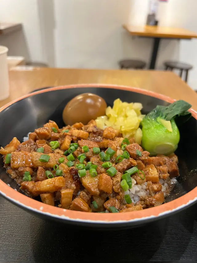 魯肉飯:肥瘦剛好嘅肉碎鋪到滿,滷汁甜鹹平衡撈勻飯粒,隻滷蛋入味到連蛋黃都染金啡色,食完碗底乾淨到唔使洗。