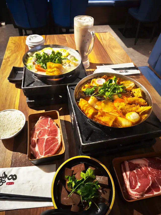 餐牌有好多特色湯鍋,有招牌臭臭鍋,沙茶醬鍋,麻辣鍋及養生鍋等。 而且仲有個抵食二人套餐, 都係$258,已經包咗兩個鍋、主食、肉類、小食及飲品。 食完又飽又暖身! 而我哋今次就揀咗佢哋嘅二人套餐