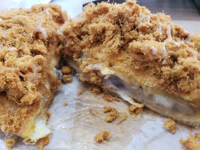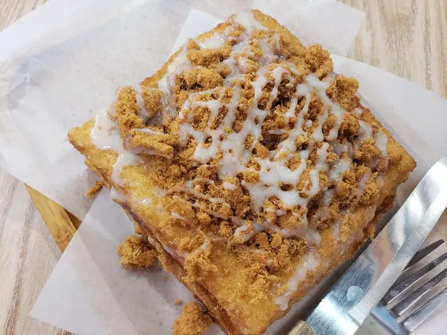 這款西多士外脆內軟,先來肉鬆及鍊奶視覺沖擊。切開內裏芝士的搭配十分獨特,加上芋泥的香甜更為此道甜品增添了層次感。