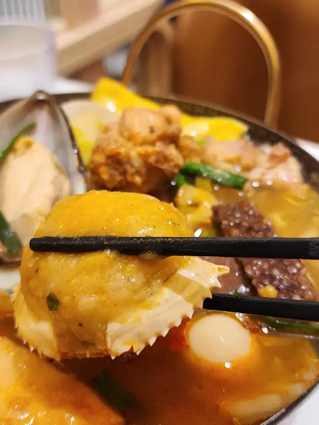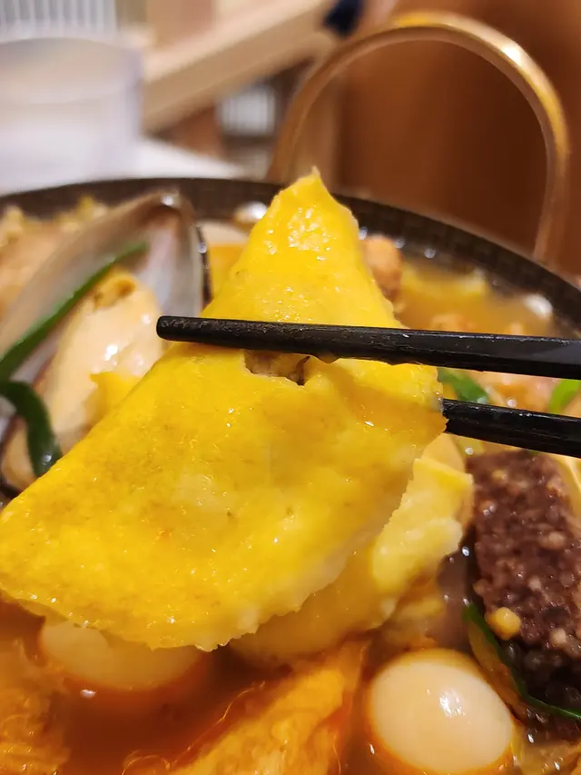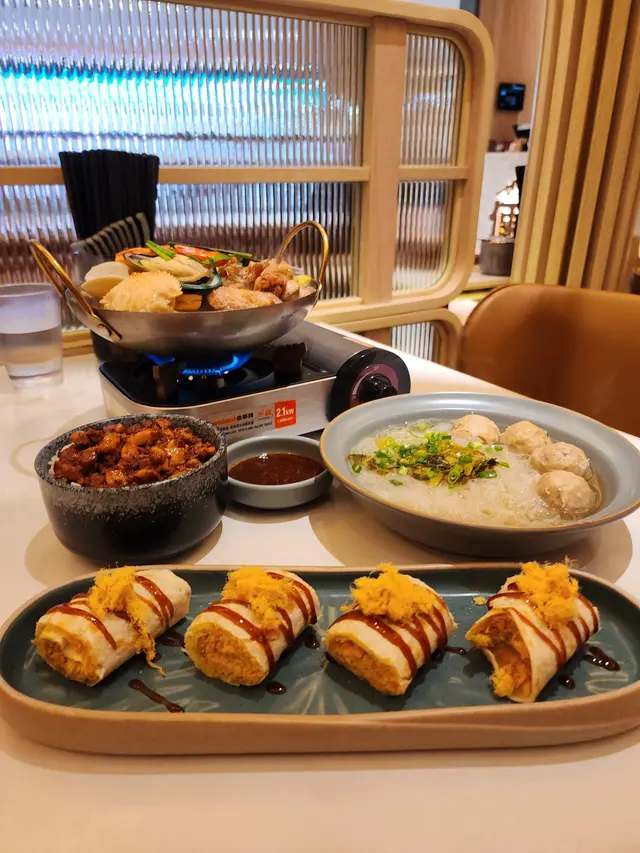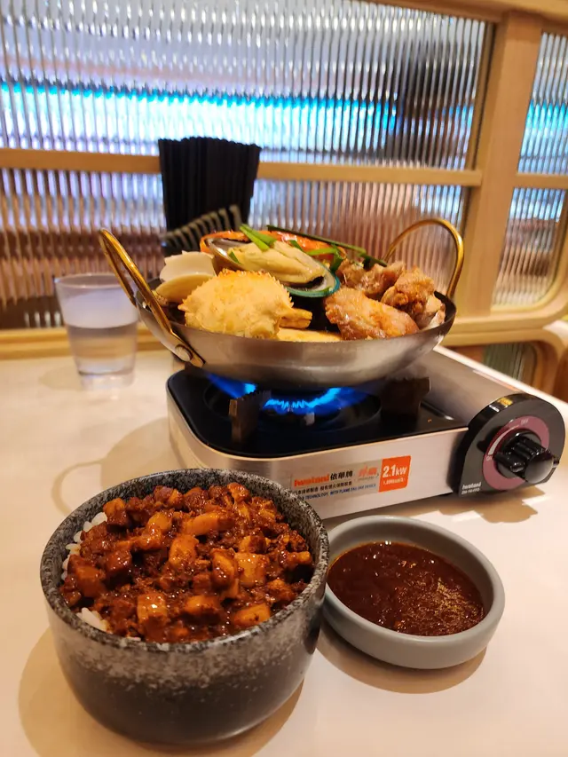 麻辣湯底香氣十足,小辣程度溫和卻不失層次,適合怕辣又想吃辣的人!海鮮配料豐富,有鮮蝦、蜆肉和爽口魷魚,吸滿湯汁非常入味。搭配的滷肉飯肥瘦均勻,醬汁濃郁,與麻辣鍋意外地契合!😋