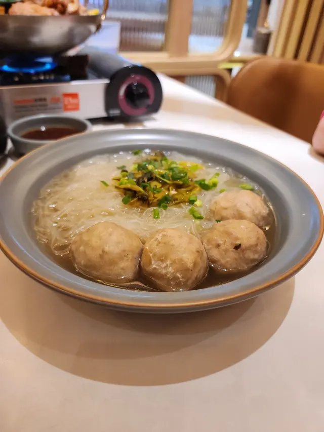 米粉湯頭清淡鮮美,貢丸彈牙有嚼勁,搭配細緻的米粉口感十足,是簡單卻滿足的選擇!🍥