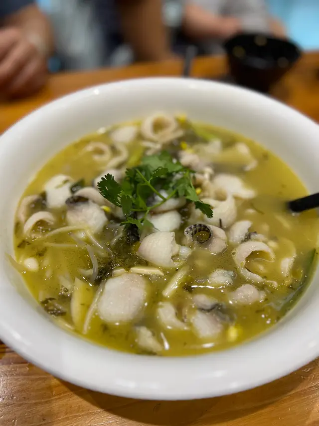 呢個酸菜魚一上枱已經覺得掂,因為佢同平時既唔同,佢冇一層好厚既油係面,少油但係唔影響佢個味道,魚片冇骨同埋幾滑,d湯冇油比我撈飯飲埋都唔怕🐟