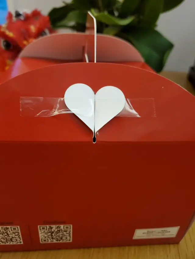 鮮紅色的外賣紙盒同農曆新年非常合襯,唔知係唔係農曆新年限定版?紙盒的封口位置甚至係心形設計,簡單而有心思。