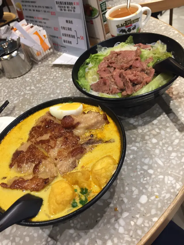 在灣仔附近吃午飯常忘記要去華嫂冰室朝聖,自從周杰倫蒞臨後這家茶記就更火了起來。中午午膳時間去排隊等候時間不會太久,要搭臺。點了大家推薦的喇沙豬扒米線、鮮牛肉米粉、樽裝凍奶茶、菠蘿油、熱奶茶。雖然吃完滿滿都是罪惡感,但是值得嘗試。很多食客都是一人一杯奶茶和一手拿著馳名菠蘿油吃得津津有味的樣子,哈哈。氣氛很好^ ^餐廳位置算寬敞,坐的位置不會太擠,上菜速度很快。熱奶茶不加糖非常濃厚,比較澀。樽裝凍奶茶相比起來會稍微甜一點,適合大夏天。下次會考慮點鴛鴦或咖啡嚐嚐味道。