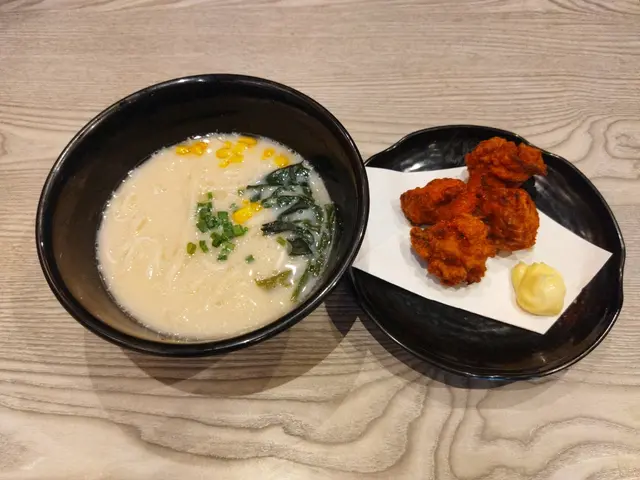 另一個餐要了唐揚雞稻庭烏冬, 烏冬彈牙, 湯底夠濃又不油膩, 海澡, 粟米粒係指定動作, 雞球炸得金香酥脆, 點埋沙律醬就更滋味