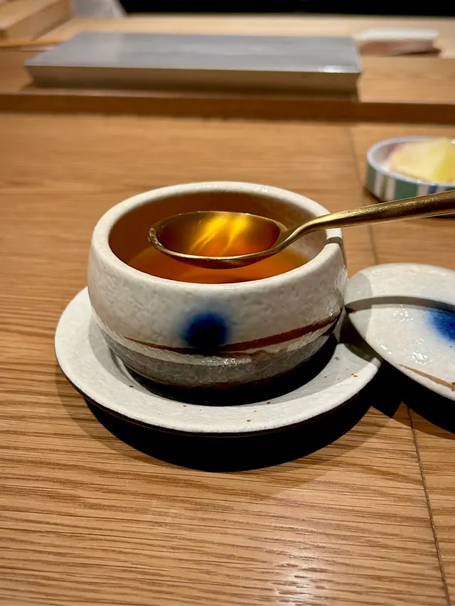 鹿兒島薩摩雞清湯以法式consommé嘅方式呈現,將日式食材與西式工藝完美融合🤣