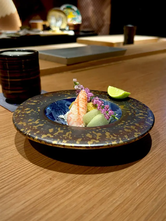 第一道前菜已經有驚喜!小樽瀨尿蝦搭配北海道紫海膽✨ 紫海膽色澤橙黃,帶有奶油般嘅滑順質地🤤