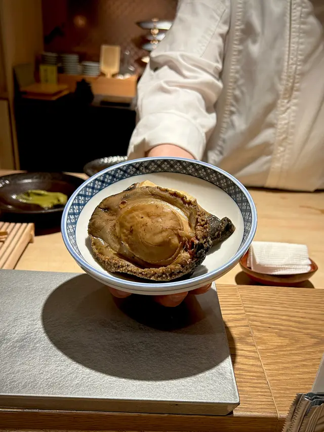 山口縣磯煮鮑魚有拳頭咁大🫨 經過8小時慢煮,肉質軟嫩而不失彈性,入口後散發出鮮甜與高湯嘅濃郁香氣✨