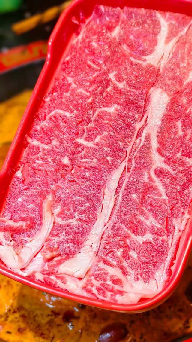 呢款牛板腱就啱曬鍾意咬勁嘅朋友!肉質實淨有彈性,牛味純粹而濃厚,涮完湯底仲能保持彈牙口感💪。配埋蔥花同蒜蓉醬汁,真係完美組合