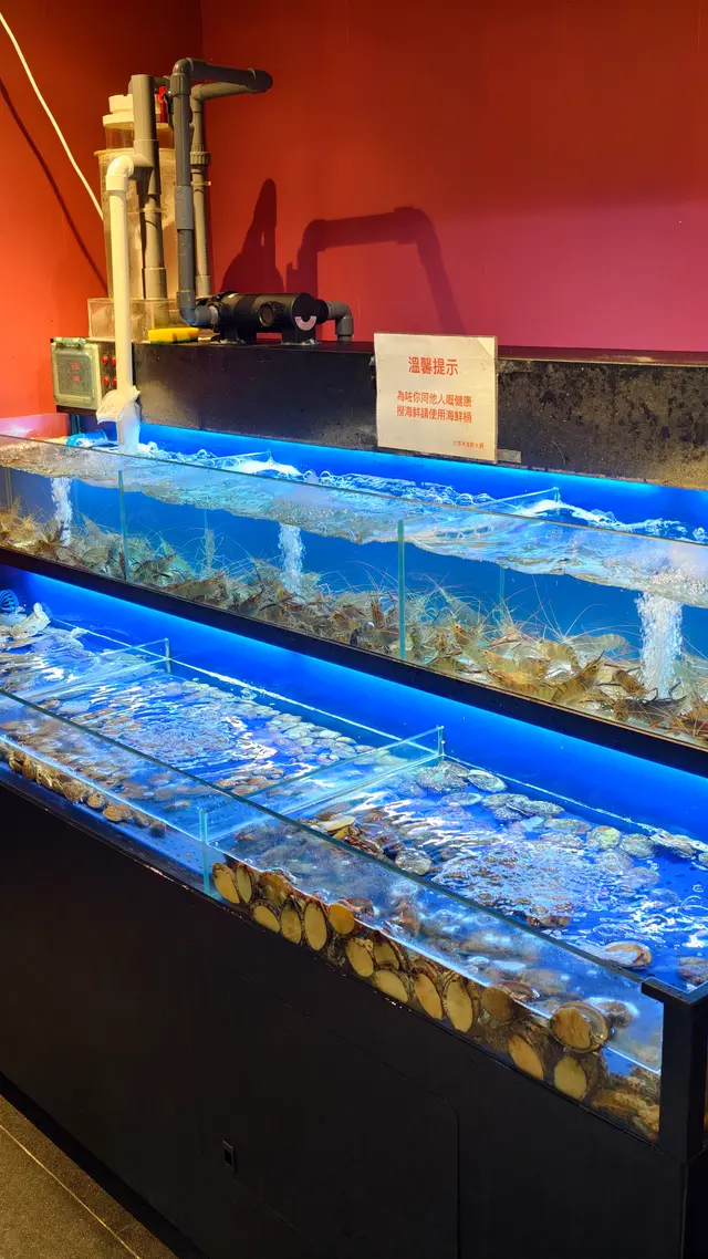 大西洋火鍋最爆點就係「任撈生猛海鮮區」!💯 餐廳內擺咗大魚缸,入面有大頭蝦🦐、蟹🦀、鮑魚🐚、蜆同東風螺,全部生猛到識郁,仲會跳出嚟,現場氣氛超熱鬧,隔離枱仲尖叫聲不斷🤣。