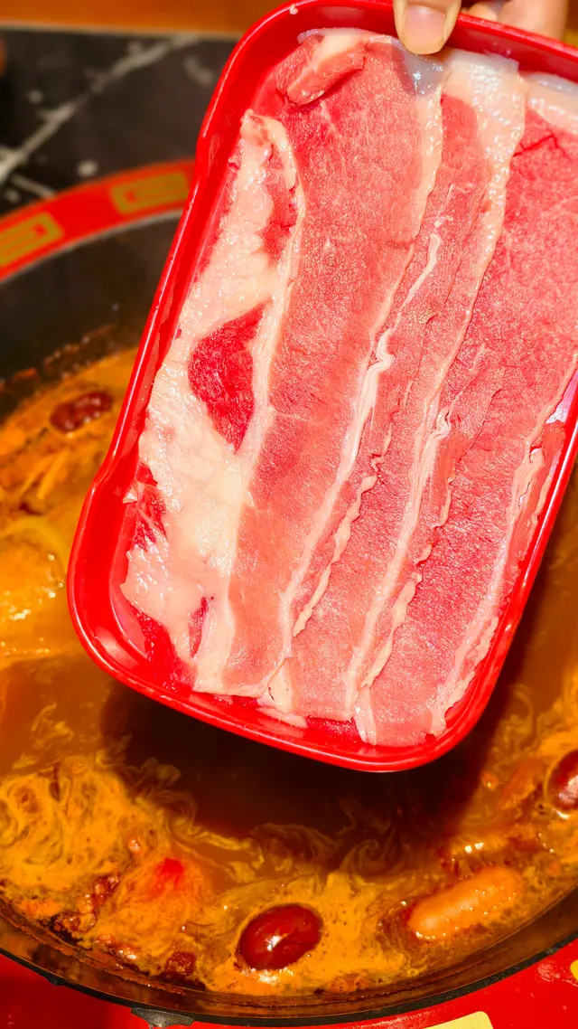 肥瘦比例啱啱好,肉味濃郁,食落有啲嚼勁,咬落仲帶少少肉汁。搭配鮮蕃茄湯底🍅,酸酸甜甜中和咗肥牛嘅油脂,唔會膩~