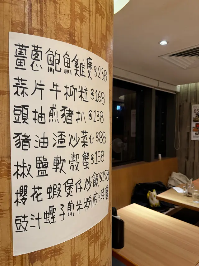 佢手寫嘅餐牌仲有特別款式,原來佢都會做私房菜,價錢都合理大約$480一位,如果屋企人住香港島附近認為值得嘗試一下。