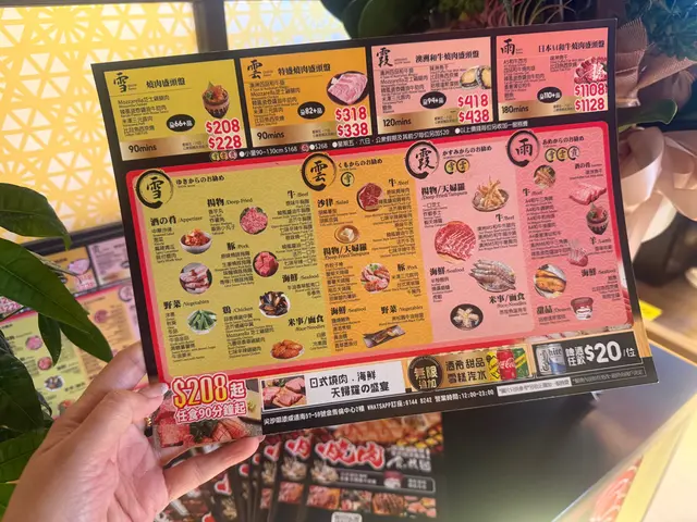 和牛燒肉180分鐘任食110品 Lindzee等级42025-11-19 关注 同舊同事相聚,難得喺尖沙咀搵到一間坐得舒服,又可以坐得耐嘅燒肉餐廳,最犀利嘅係180分鐘任食,輕輕鬆鬆慢慢燒慢慢食!環境日式氛圍濃厚,暖黃燈光搭配木質裝潢,氛圍感很好。A5和牛西冷:第一眼視覺好大塊!四品和牛肉盛:一次過嘗盡四款和牛,各有風味。日本A4和牛燒肉盛頭盤:幾款不同和牛肉質軟嫩韓風瓷壺醬油牛肋肉:浸滿秘制醬汁,非常入味除咗牛肉之外,海鮮與配菜都非常驚喜!菇菌烤後多汁,粟米粒香甜,拉絲雞肉芝士滿溢,一口爆漿!揚物天婦羅:一大盤豐富選擇,熱辣辣上盤,顏色金黃,非常香口!套餐包括啤酒、飲品及甜品無限供應!180分鐘食到咁多高品質和牛、海鮮,性價比超高!以上食记乃用户个人意见 , 并不代表OpenRice之观点。赞好分享和牛燒肉180分鐘任食110品 八木橋日式燒肉 https://s.openrice.com/QrLT0haLV00检举 张贴 评分5味道5环境5服务5卫生4抵食用餐日期2025-11-11用餐途径堂食用餐时段午餐