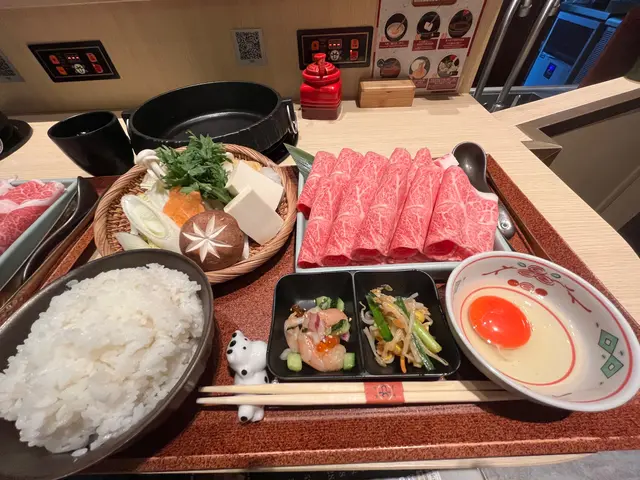 枱上有指示介紹正宗嘅壽喜燒食法,店員亦非常有耐性地講解及示範食法,務求用最正宗嘅方法食到和牛的高光一刻。