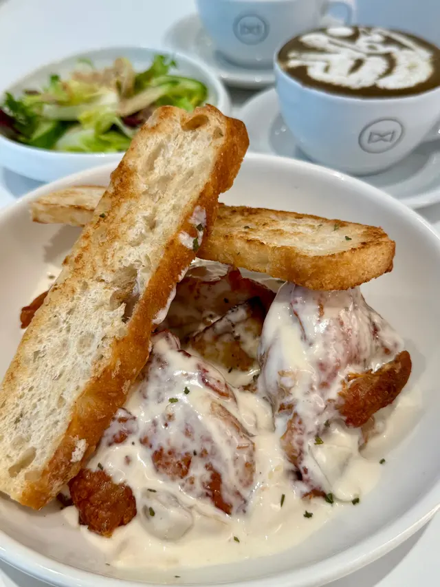 雞肉質鮮嫩,白酒忌廉醬汁濃郁,香草麵包蘸汁食,美味至極。