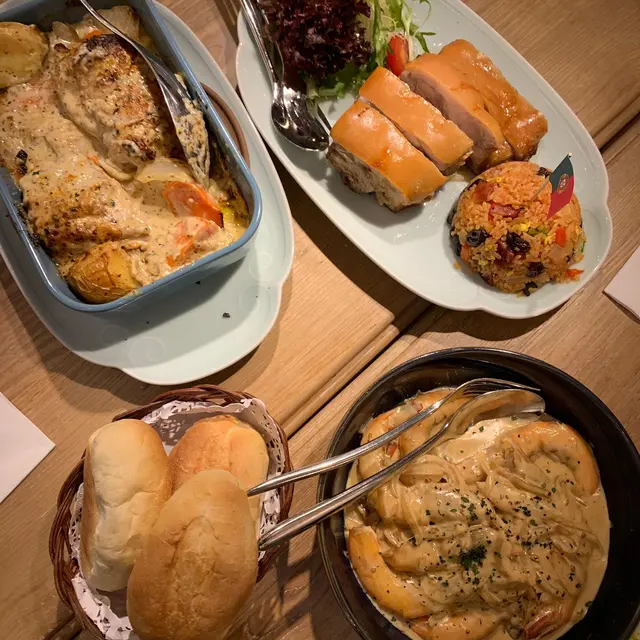 葡式燒乳豬要D時間出,因為即叫即做。乳豬香脆,肥瘦均勻。配埋佢地嘅肥仔炒飯,茄汁、提子乾、葡式香腸同埋炒蛋,味道好豐富!