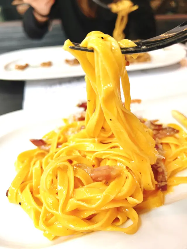 香脆濃郁嘅意大利煙肉,再配上新鮮蛋黃,令意大利粉食茄落香口及滑溜😋
