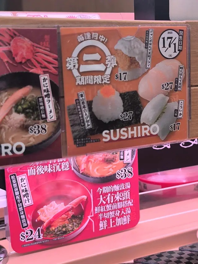 壽司郎的壽司新鮮程度一向有保證,今期新推介“蟹三味”(蟹肉拌蟹膏~啖啖蟹膏而且唔腥味道可以, 生松葉蟹腳~鮮甜, 水煮松葉蟹爪下捧肉~略略偏細,一口吃完😅)