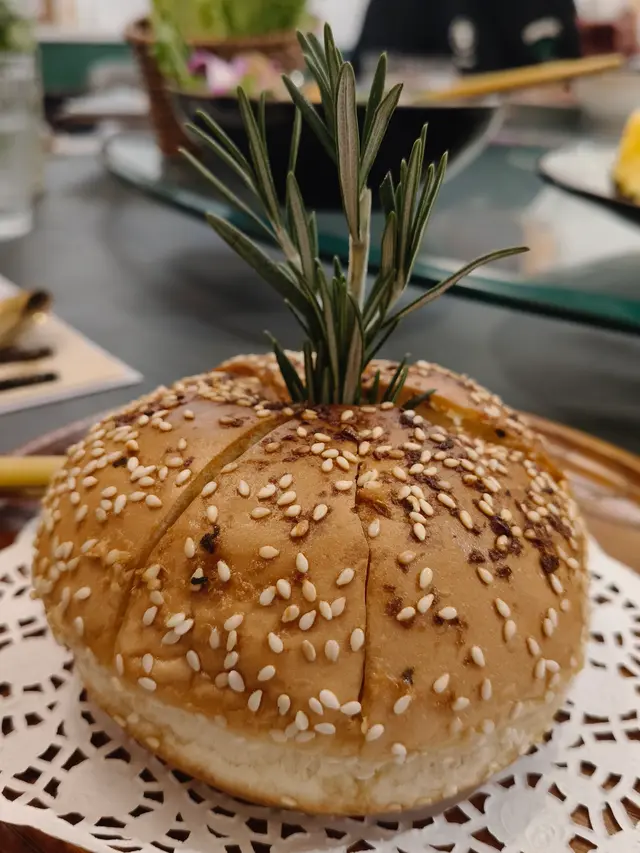 另一個驚喜係「特製蒜蓉包」,造型有點像南瓜🎃,中間仲有粒蒜頭!🤣 點埋佢地秘製嘅「黃咖喱牛腩」,咖喱香濃,牛腩炆得軟腍,用蒜蓉包蘸滿咖喱汁,滋味無窮。😋