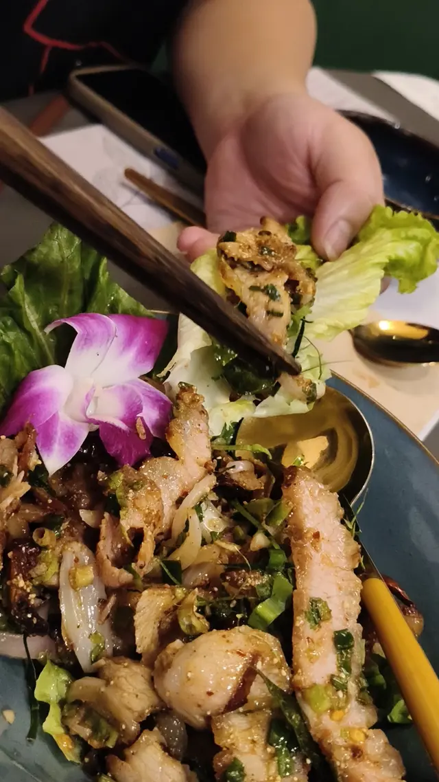 平時肉碎生菜包就食得多,今次試新嘢「豬頸肉生菜包」!🐷 豬頸肉切片炒得香口,用新鮮爽脆嘅生菜包住食,口感豐富,又唔會太膩。