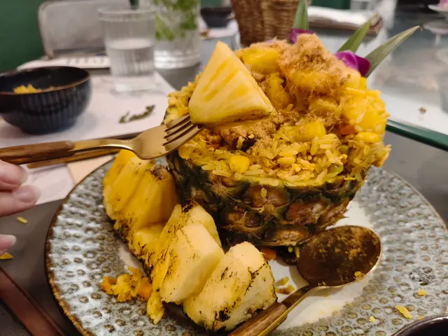 「菠蘿海鮮炒飯」絕對係必點!🍍 用原個菠蘿上,炒飯鑊氣十足,鮮蝦超彈牙、菠蘿仲夠鮮甜,最正係仲有一楷香甜嘅燒菠蘿,誠意滿分。💯
