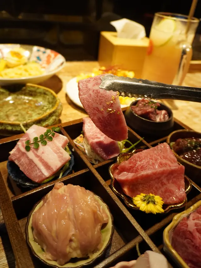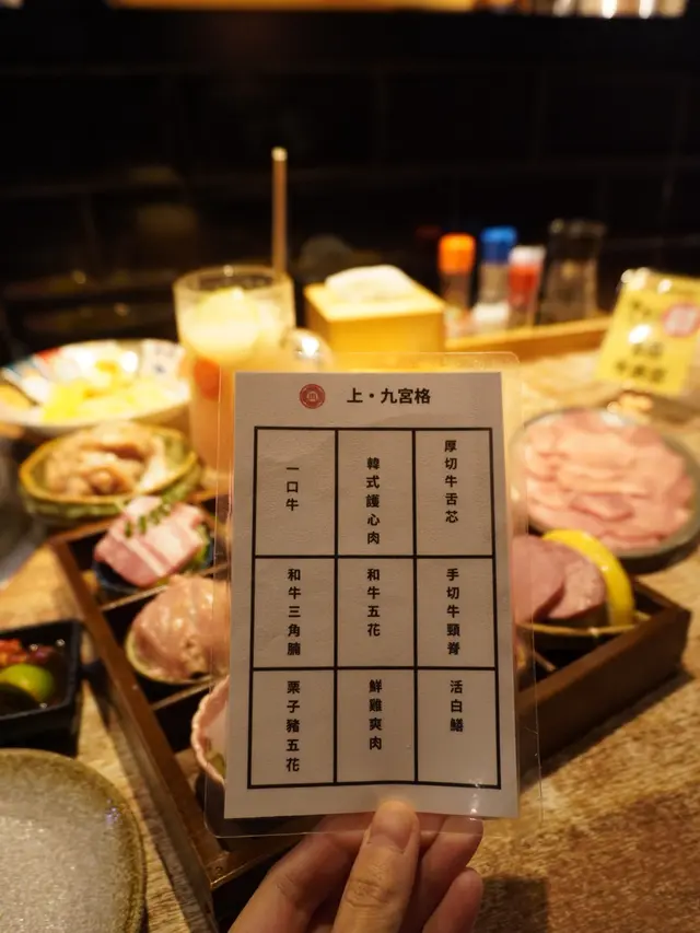 呢到仲有好Signature嘅九宮格🔹差唔多次次黎都叫呢個,有3個價位,我哋揀最平嘅都好夠食,貪佢一次過可以試多幾款肉😙「上•九宮格」分別有厚切牛舌芯、韓式護心肉、一口牛、和牛三角腩、和牛五花、手切牛頸脊、栗子豬五花、鮮雞爽肉、活白鱔。最鍾意係和牛三角腩,油花十足入口即化唔洗點咬🥹一人一件就啱,食得多就變膩🤣韓式護心肉都正,好入味,無咁肥又有咬口😋