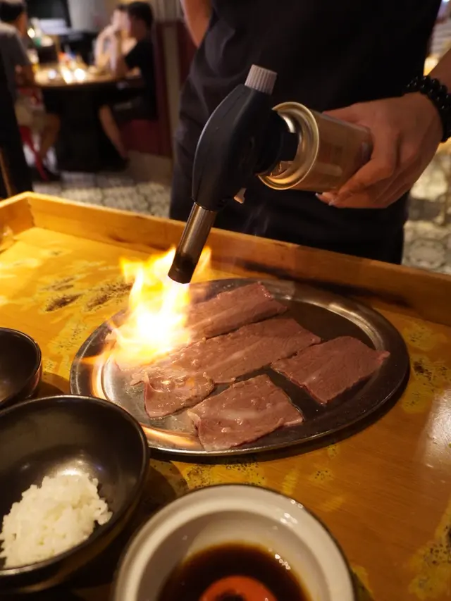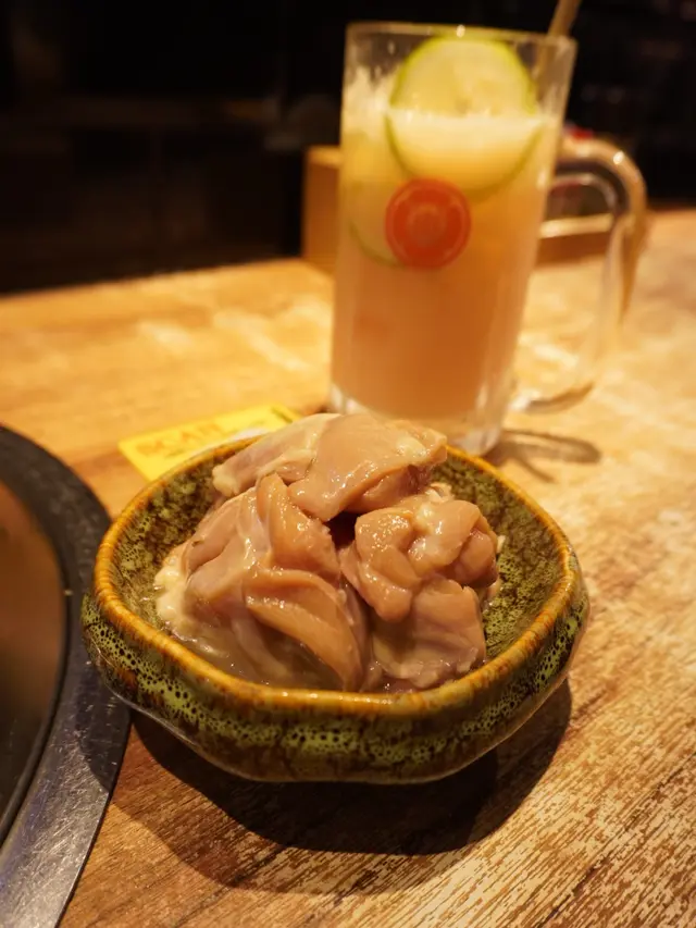 我哋仲食左和牛壽喜燒,店員用火槍燒燒到5成熟左右,再沾上蛋黃加醬油,配上一粒飯食,好滿足😚除咗牛,雞肉都好食,柚子漬雞肉山份量多!肉質好滑!
