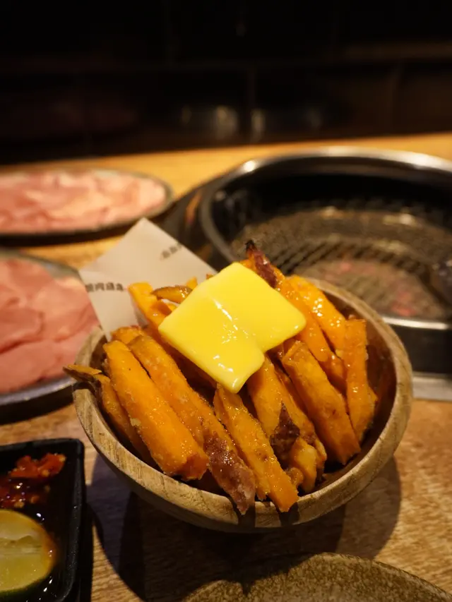 小食方面,我哋要左蜜糖牛油蕃薯條🍟望住啲牛油溶🧈好邪惡,但真係好香口,我哋未燒肉之前已經食晒成碟😂
