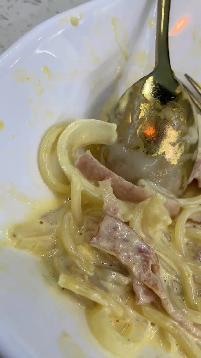 卡幫尼意粉,我在網上睇咗幾次,都冇見有洋蔥,但係這間店的卻有洋蔥出現。那是否一個新派的卡幫尼意粉?另外在這碟意粉裏面,搵到兩三個蛋殼,是否驚我鈣質唔夠?哈哈哈哈
