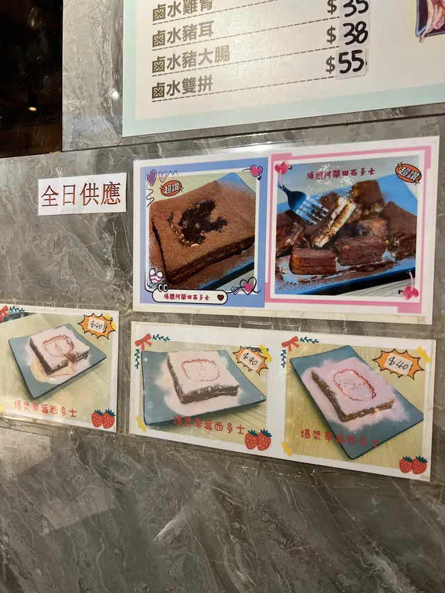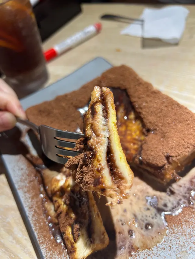 呢個西多士都係佢地既招牌,餐廳牆身貼既西多士相出黎,賣相好吸引,西多士既中間係滿滿既流心奶,好正,個西多士可以揀花生醬或榛子醬,榛子醬就要加$2,我地都照揀榛子醬,覺得咁先夾個西多士,佢佈滿曬阿華田粉,啖啖都食到香濃既阿華田味😋