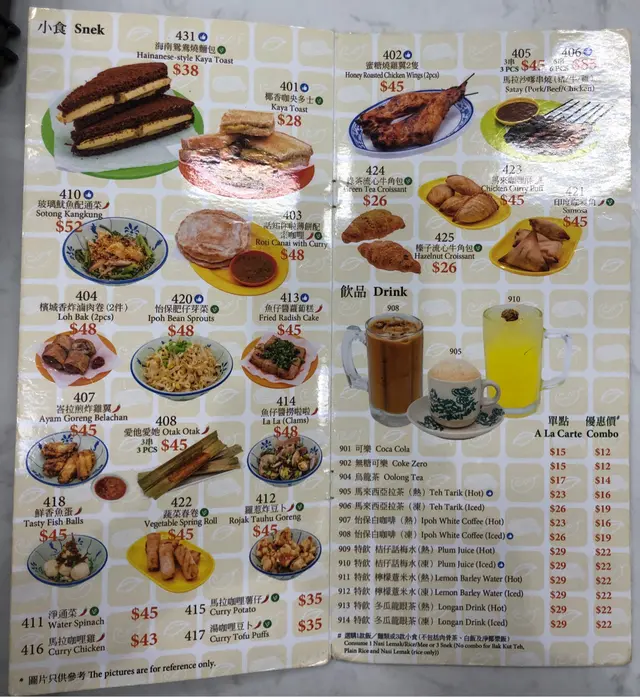 *要選購一款飯/麵類或3款小食(不包括肉骨茶、白飯及淨椰漿飯)