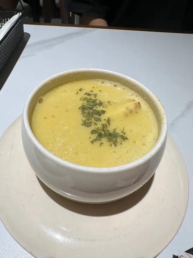 先嚟個忌廉粟米湯,佢用咗新鮮嘅粟米打蓉,加入忌廉湯入邊,滑順可口,多1分層次口感。