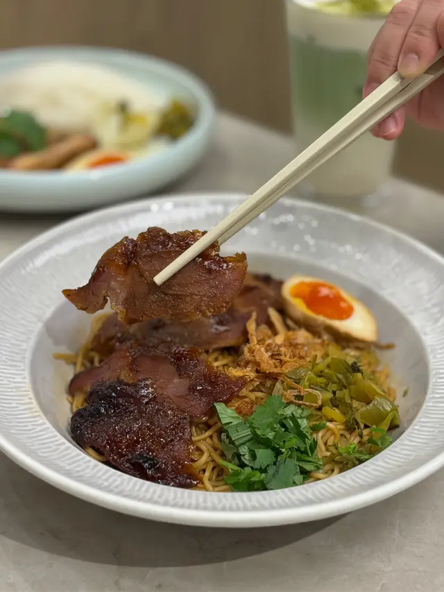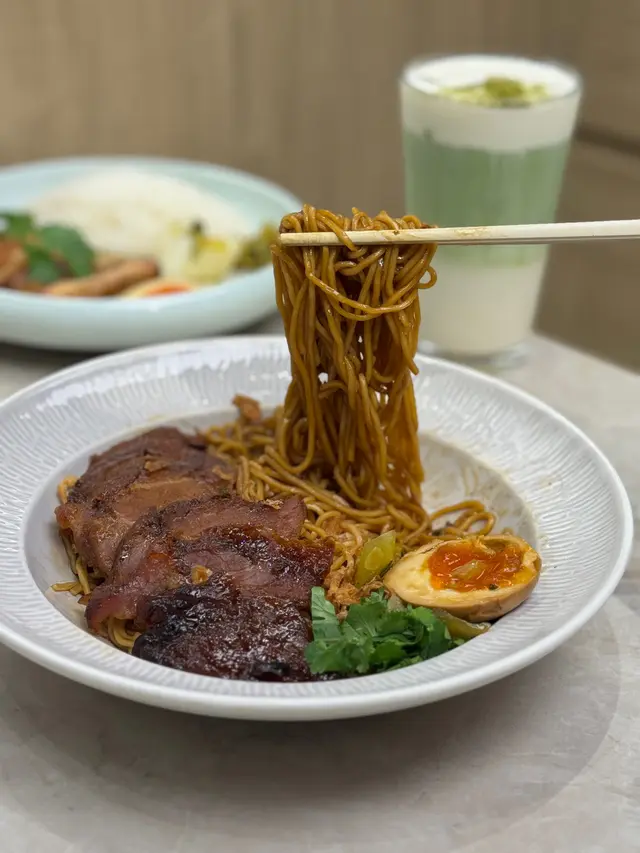 另一款就叫咗燒烤叉燒流心蛋撈麵,醬汁有醬油同埋冬陰功,最後揀咗醬油口味,麵條口感幾乾爽,底下有啲醬汁,建議攪勻食。叉燒份量都有五六片,比例主要以瘦肉為主,但係整得幾入味易咬。