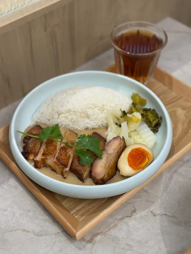 最後一款主菜揀咗烤雞扒飯, 醬汁分別可以選擇白咖喱或者係泰北咖哩,最後揀咗比較少見嘅白咖哩。白咖哩醬汁濃稠,烤雞扒就放係側邊,側邊仲有流心蛋、榨菜等配料,口感豐富。
