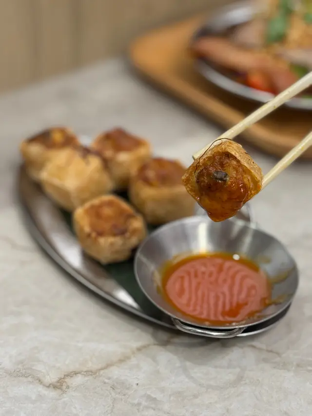 小菜就揀咗加錢香脆墨魚釀豆卜,豆卜一共有六舊,上面釀咗啲墨魚滑,豆卜炸得脆口, 食落有啲似港式煎釀三寶