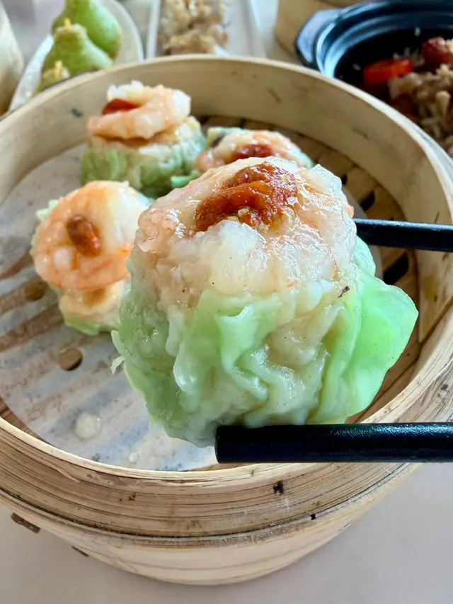 豬肉與蝦仁比例恰到好處,頂部完整大蝦鮮甜,肉汁豐盈。
