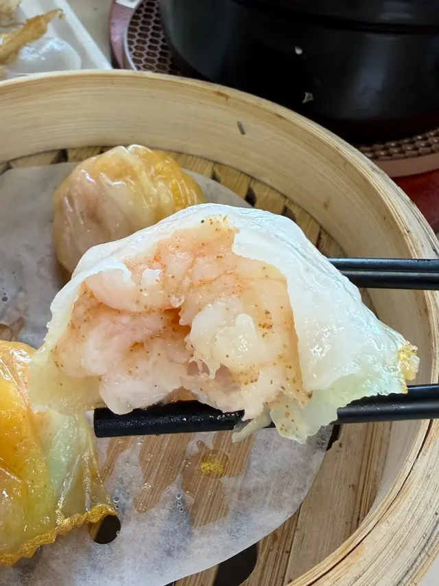 皮薄,蝦肉飽滿彈牙,大地魚湯的鮮香隱約滲透。