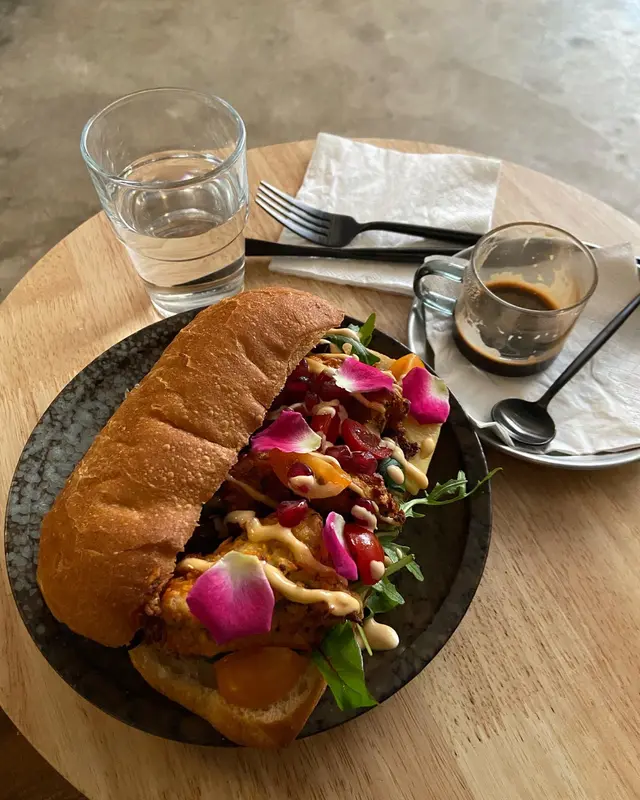 食物比出面cafe有多啲特色,今次叫左脆雞三文治配是拉差辣醬,香口得黎又惹味,推薦!不過佢食物menu會更新,每次去都會有驚喜!咖啡方面不過不失吧~