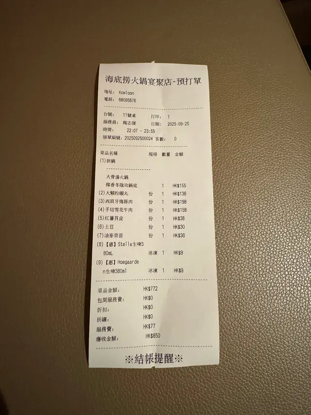 啦啦啦⚽️通宵睇波好地方 愛吃鬼波兒等级42025-09-2639 浏览 关注 啦啦⚽️通宵睇波好地方 有now TV直播📺 !尖沙咀開到凌晨6:00 有冷氣睇波闊落 又有得自己一大枱🍻咁岩 Hoeggarden 同stella $9.9一杯🍺第一次喺香港食海底撈🍲🍲鴛鴦鍋雙拼湯底 - 大骨湯火鍋+椰香冬陰功鍋底食開香辣嘢又戒唔到口 宵夜又唔可以太刺激 所以叫左個大骨湯火鍋 balance 返🦴大骨湯火鍋 濃濃的 湯底有大量菇類🍄🟫再加杞子紅棗 即刻養生左🧘🏻♀️🌶️椰香冬陰功鍋底 酸辣岩岩好!好惹味 個湯底濃到根本就唔洗再點醬料 邊食邊玩🤣🍠紅薯粉好煙韌 ~必須擺落冬陰功湯底 索晒所有精華🍅💦仲送左個嗰果盆 雕條蛇出嚟🐍🍻Stella生啤+Hoegaarden生啤$9.9一杯🍺必叫 抵到!!以上食记乃用户个人意见 , 并不代表OpenRice之观点。赞好分享啦啦啦⚽️通宵睇波好地方 海底撈火鍋・宴聚 (加連威老道) https://s.openrice.com/QrLT07vXU00检举 张贴 评分4味道4环境4服务4卫生4抵食用餐途径堂食