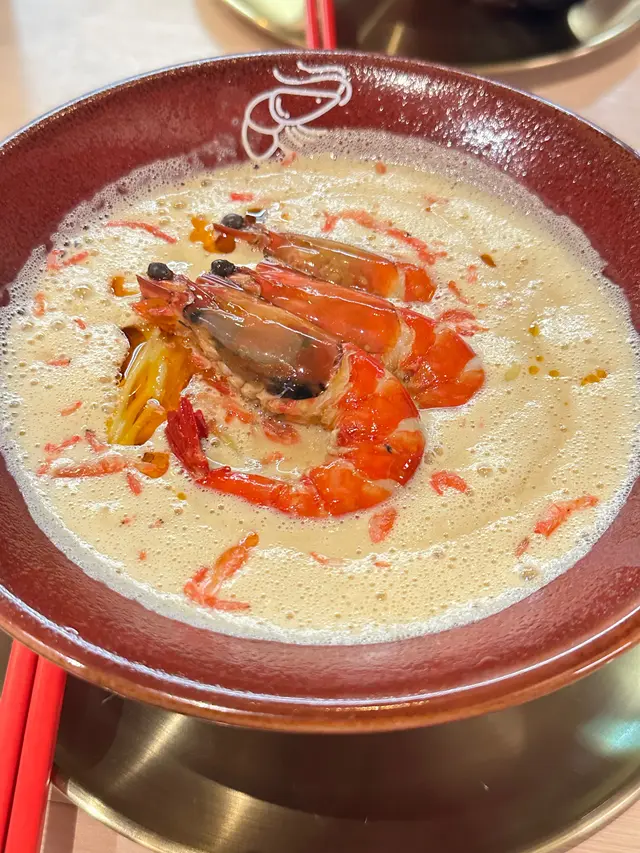一入門口,成間舖頭都係比鮮蝦🦐🦐🦐🦐🦐🦐味籠罩住。第一次食,店員介紹舖頭只有一款蝦麵,每碗麵有三隻蝦,另外可以加啲配料。