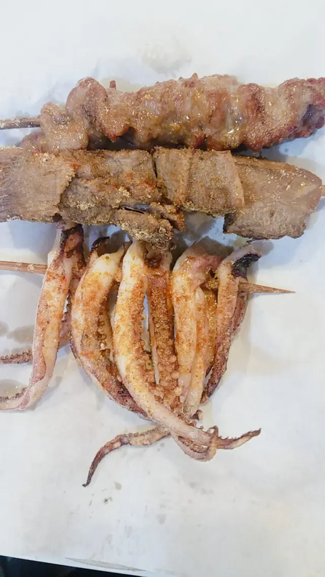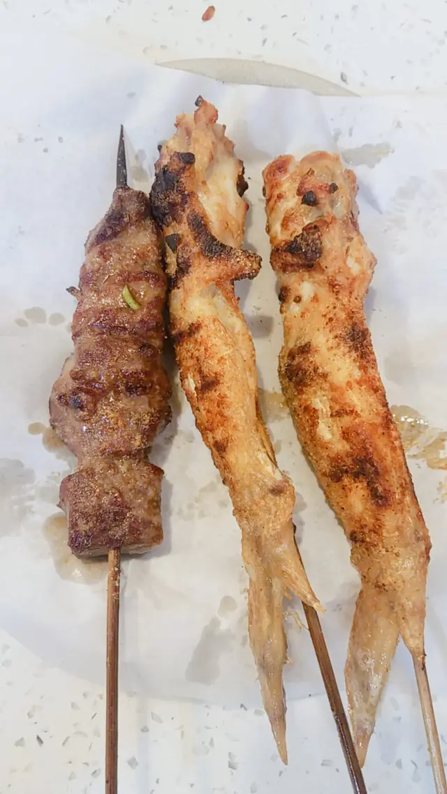 今日喺黃大仙朋友帶路下去咗進來吃食川味串燒,坐低發覺menu上串燒選擇好多,其實除串燒外仲有雞煲同埋炒粉麵都有。我哋今次就集中食串燒同烤貝類海鮮。今次叫左燒生蠔四隻、紐西蘭蟶子、扇貝、帶子同埋白鱔。生蠔好美味蠔味好出。扇貝就超爽口,帶子就好有鮮味。紐西蘭蟶子既爽口又有海洋嘅味道。貝類海鮮上都鋪滿蒜蓉及辣椒真係好惹味。白鱔就絕對值得推介,燒得恰到好處皮脆肉滑,而且內裏嘅魚肉真係好鮮味。 另外點咗燒牛柳粒、牛舌、雞串、魷魚鬚、雞全翼兩隻,仲有茄子。每樣肉類都燒得好細緻,表層都灑滿川味辣粉同埋醃料,所以份外有川味嘅感覺,特別重點推介係魷魚鬚及茄子。茄子索曬醬油嘅味道超好味,而本身茄子又大條而且新鮮,所以係川味燒烤必食之選。魷魚鬚就每條都好彈牙而且一d都冇過燶或乾。