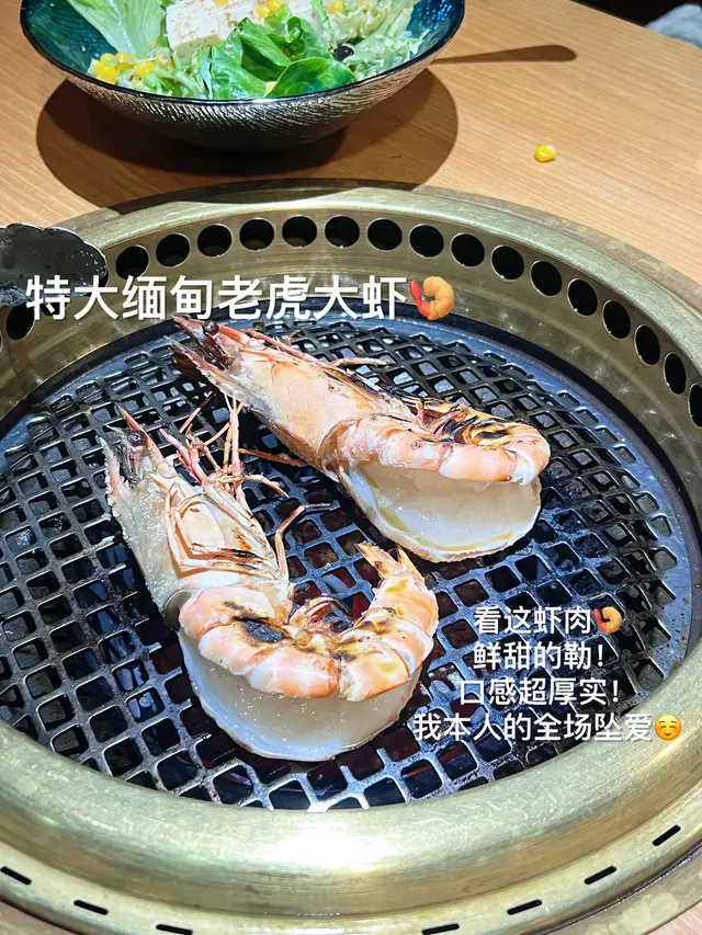 特大缅甸大🦐!两只就能占满烤盘,是那种比较厚实有点嚼劲的口感。
