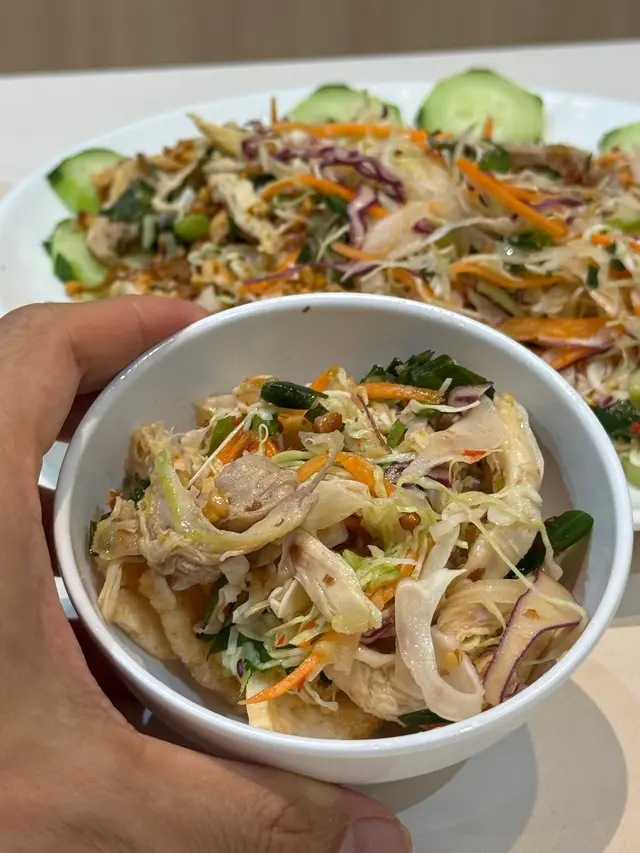 烤花生碎|配住下層嘅雞絲|椰菜|再加上酸辣嘅醬汁|整體清爽開胃!