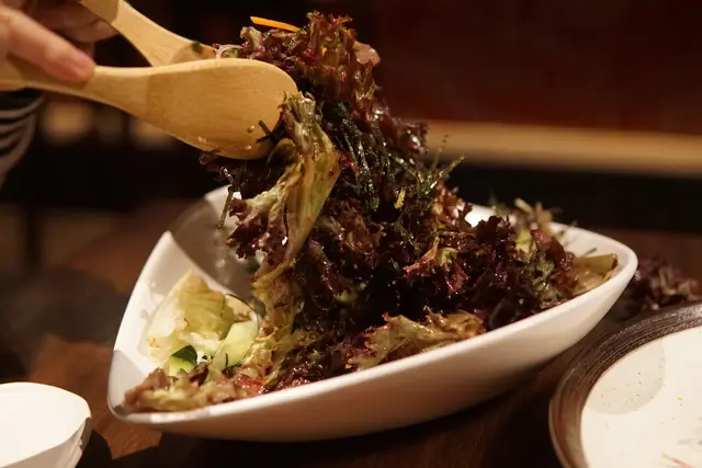 裡面除了有多種菜類,而且還有青瓜、洋蔥、紫菜,還有酸酸地的醬料!大兜又開胃!