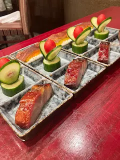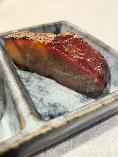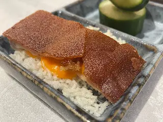 我是第一次吃這個組合,乳豬皮薄脆且不油,香芒起了平衡油膩的作用,不用點乳豬醬及砂糖已味道豐富,也欣賞師傅的心思。