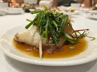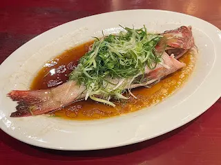 游水新鮮貨,蒸後撞上蔥絲,顏色搶眼球,忍不住要手機食先 XD 蒸得時間拿捏得剛好,肉滑,配上特別調製的蒸魚豉油吊出魚鮮,美味之餘亦感受到師傅對食材嚴格的要求。