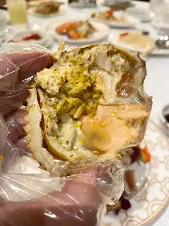 剛才說過奄仔蟹是已經性成熟卻尚未交配的母蟹,我覺得它好吃的地方,不僅在於它肉鮮甜美,還在於它的蟹膏不像大閘蟹膏那麼硬,而是半流質,香滑細膩得多: