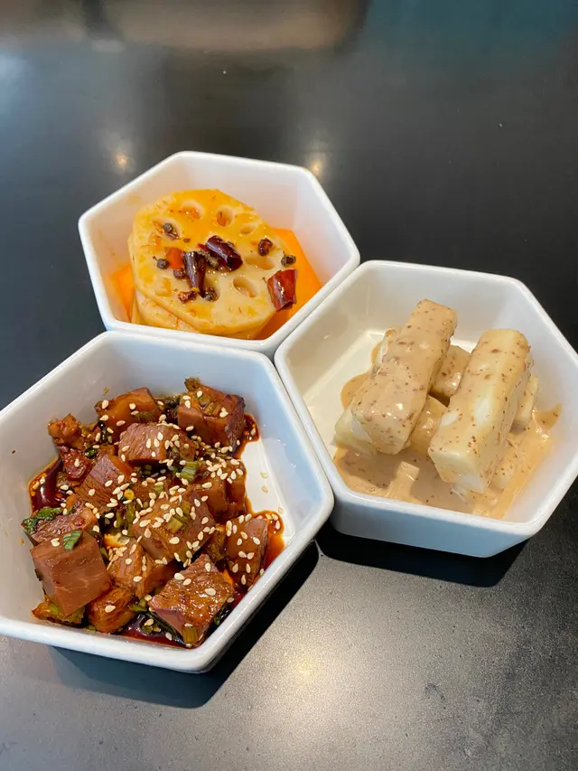 微酸微辣, 很是開胃, 其中三香三椒蹄花肉特別選用含大量膠原蛋白的前豬肘,配上秘制麻辣醬汁,既有麻香又辣得清爽。